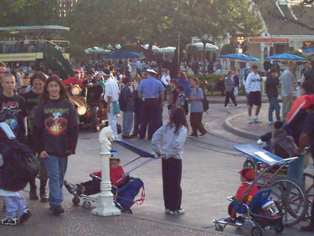 A sudden interruption in the harmony of Disneyland... a cop lectures a group of wayward youth. |