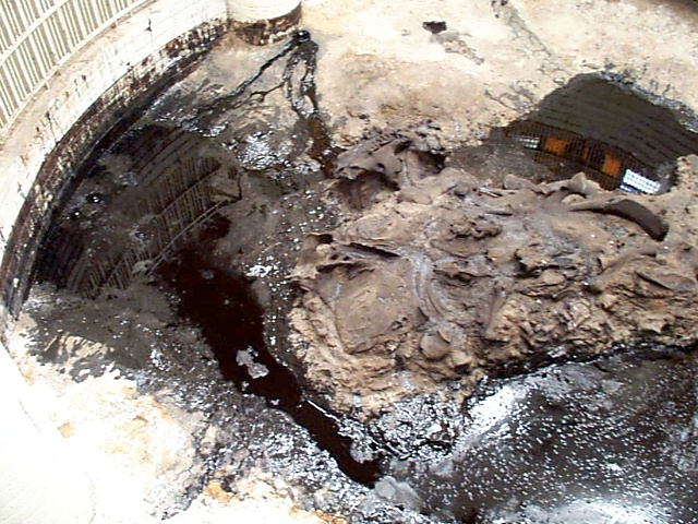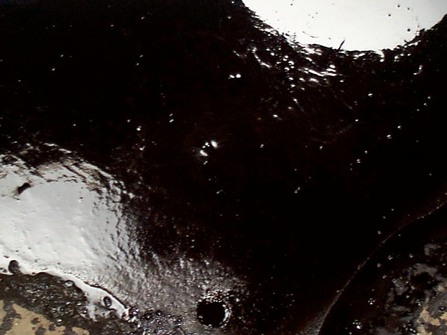 65 million year old tar in the La Brea tar pits. The dimple in the middle is where Marion dropped a penny and it slowly sank! |